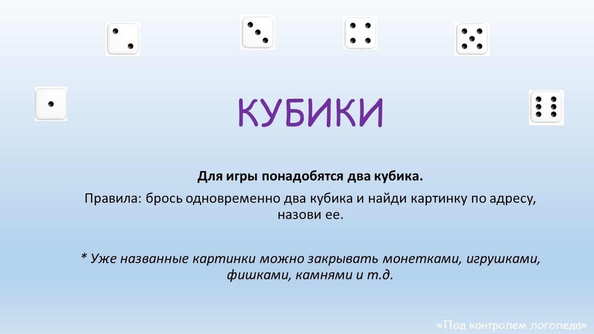 Для игры нужны два кубика. Распечатайте карточки и играйте.