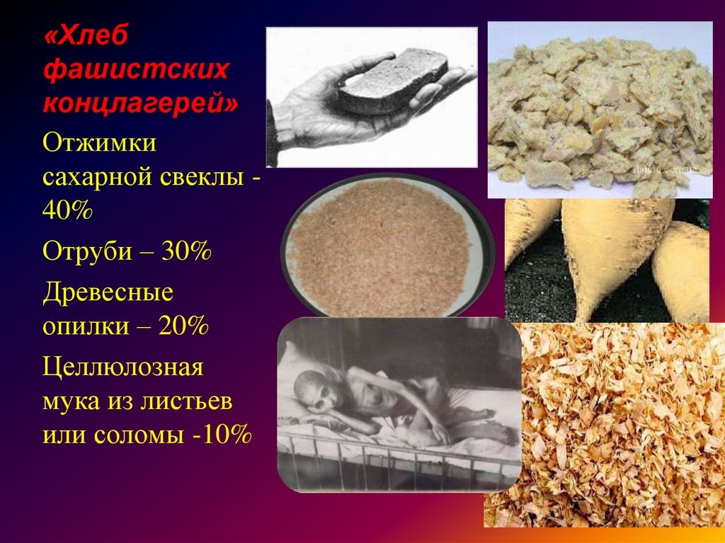 ✔ Узников концлагерей морили голодом — суточная норма хлеба составляла 150–200 грамм