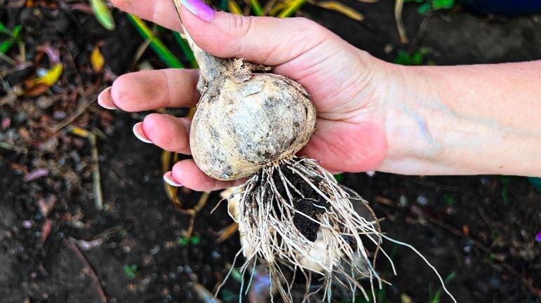 Если вам нужен посадочный материал чеснока, оставьте несколько штук для созревания, он же потом послужит сигнал