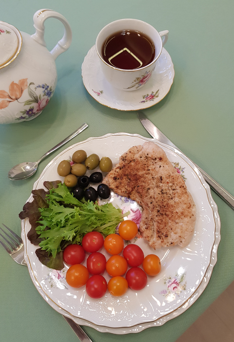 Добрый день, дорогие друзья! Сегодня я представляю вашему вниманию рецепт быстрого приготовления свинины, без предварительного маринования, долгого запекания, а результат порадует насыщенным вкусом и ароматом. Для приготовления нам понадобятся: 1,2 килограмма свиных стейков, 1,2 чайной ложки соли, 1 столовая ложка приправы прованские травы, 1 столовая ложка подсолнечного масла. Приготовление: Свиные стейки разложить на разделочную доску, накрыть полиэтиленовой пленкой. Отбить кухонным молотком с двух сторон. Посолить, посыпать приправой, полить растительным маслом. Разогреть сковороду и выложить стейки. Обжарить на сильном огне с каждой стороны по 3 минуты. Сложить все стейки в сковороду, накрыть крышкой и доготовить в течение 6 минут на маленьком огне. Разложить горячие стейки по тарелкам, дополнить помидорами черри, оливками, маслинами и листьями салата. Приятного аппетита!
