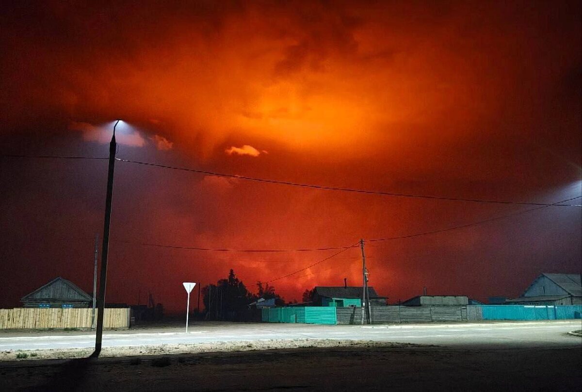 Ночью в 10 км от поселка поднялся верховой пожар и сильным ветром направился в сторону поселка.