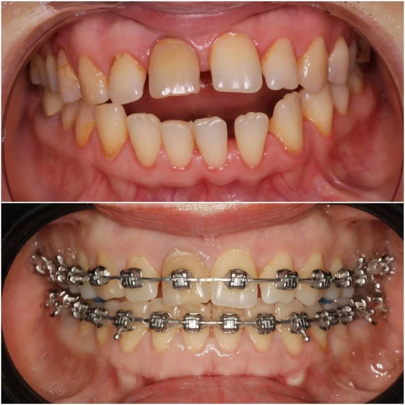 Пациентка обратилась с жалобами на неправильный прикус и неровные зубы. При осмотре выявлен открытый прикус во фронтальном отделе.