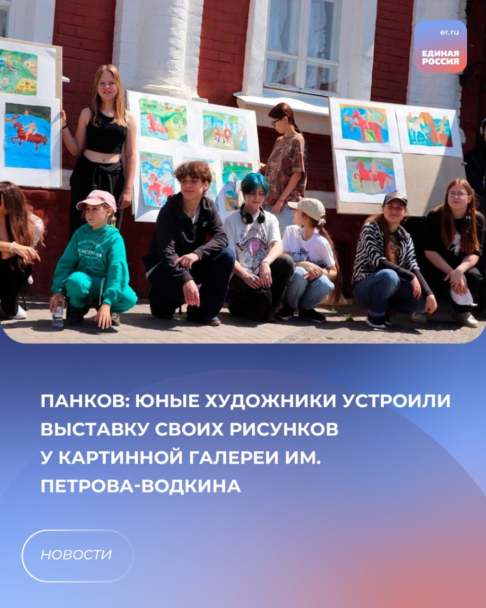 🖌️ Панков: Юные художники устроили выставку своих рисунков у картинной галереи им. Петрова-Водкина