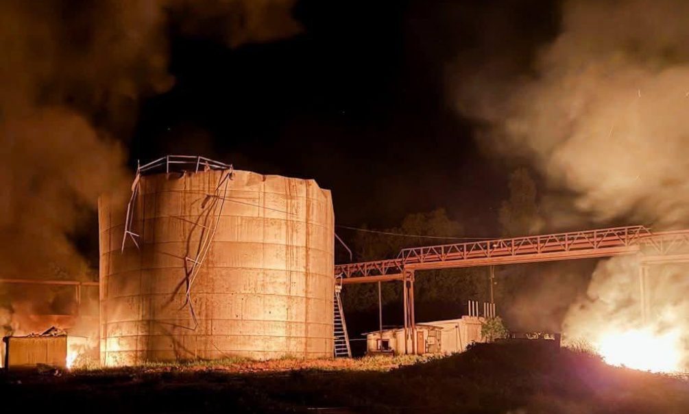 В Сумской области атакован завод по производству биоэтанола — вещества, которое используется как топливо и важно для снабжения армии. По данным украинской стороны, по предприятию было нанесено не менее 12 ударов дронами. Завод серьёзно повреждён, на месте вспыхнул масштабный пожар.
