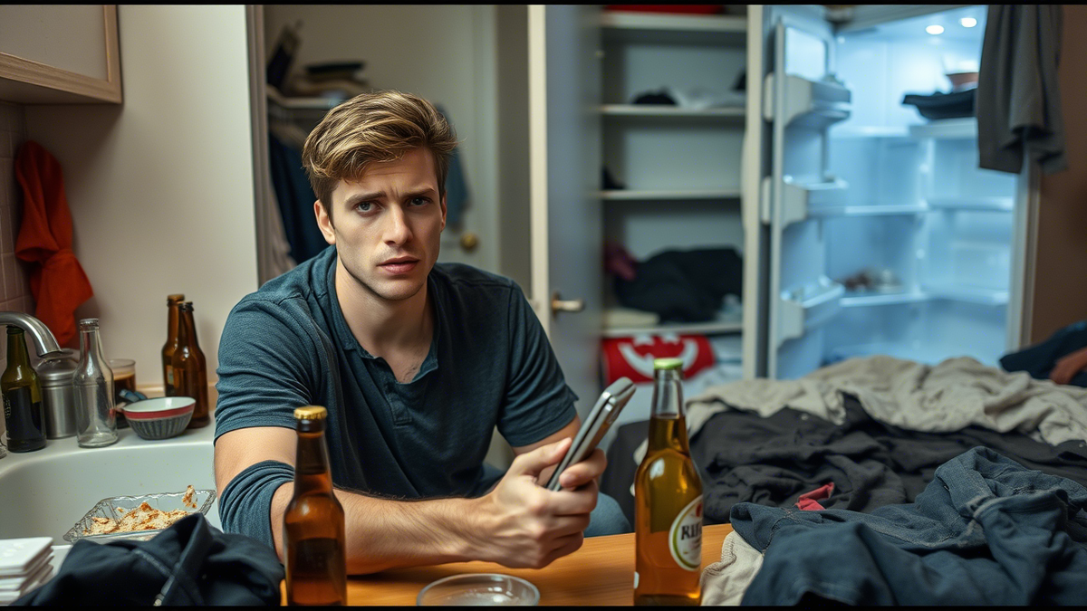 В квартире быстро стало грязно. Виктор не привык следить за порядком — это всегда делала жена. Посуда копилась в раковине. Холодильник пустел — в нём оставались только пиво и старый сыр.