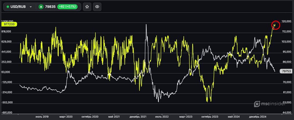 🏠 Чистый нетто-лонг физиков во фьючерсе на USD/RUB обновил исторический рекорд — данные MSCinsider