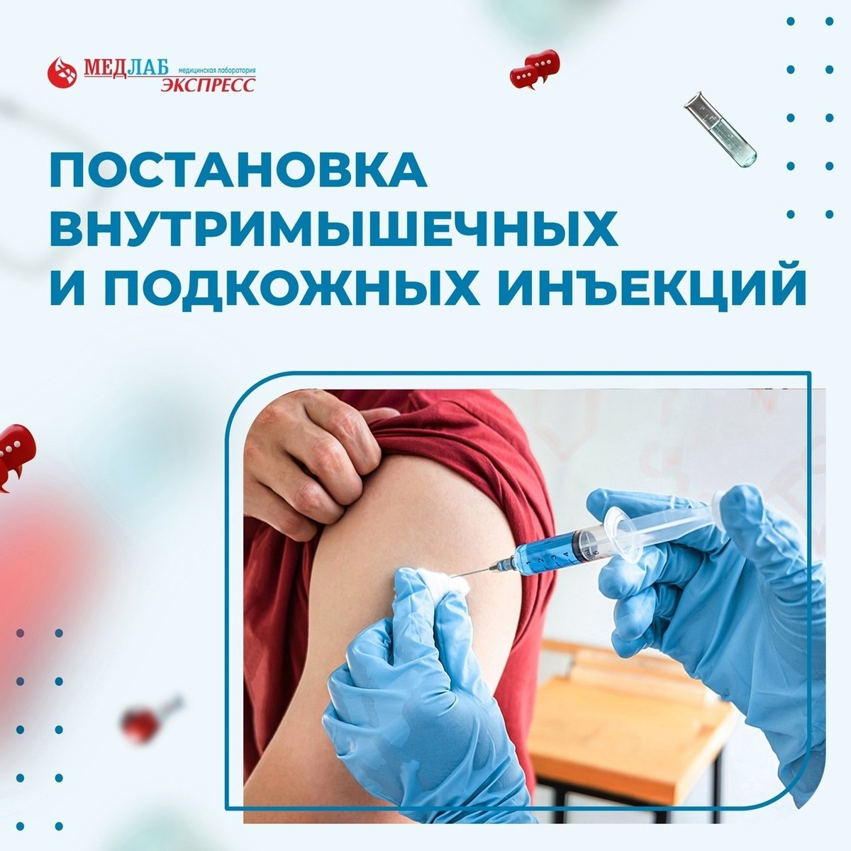 💉 Мы знаем, что многие люди испытывают страх или дискомфорт при необходимости делать уколы. Однако не стоит забывать, что инъекции – это важная и зачастую необходимая часть лечения. В нашей лаборатории «МедЛабЭкспресс» есть услуга: «Постановка внутримышечных и подкожных инъекций». Это значит, что наши специалисты могут сделать вам необходимые инъекции во всех заборных пунктах лаборатории в порядке очереди. Мы стараемся создать комфортные условия, чтобы вы могли настроиться на процедуру в спокойной атмосфере. Будьте здоровы! ! ✨ #Медлабэкспресс #анализы #Пермь #здоровье #здороваяпермь #анализыпермь