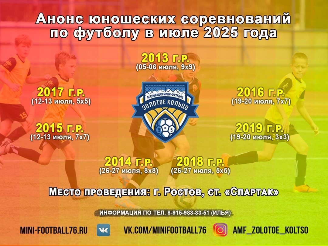 Ассоциация мини - футбола приглашает команды принять участие в Кубках АМФ "Золотое кольцо" по ФУТБОЛУ среди юношей, которые пройдут в ИЮЛЕ - ОКТЯБРЕ 2025 года: