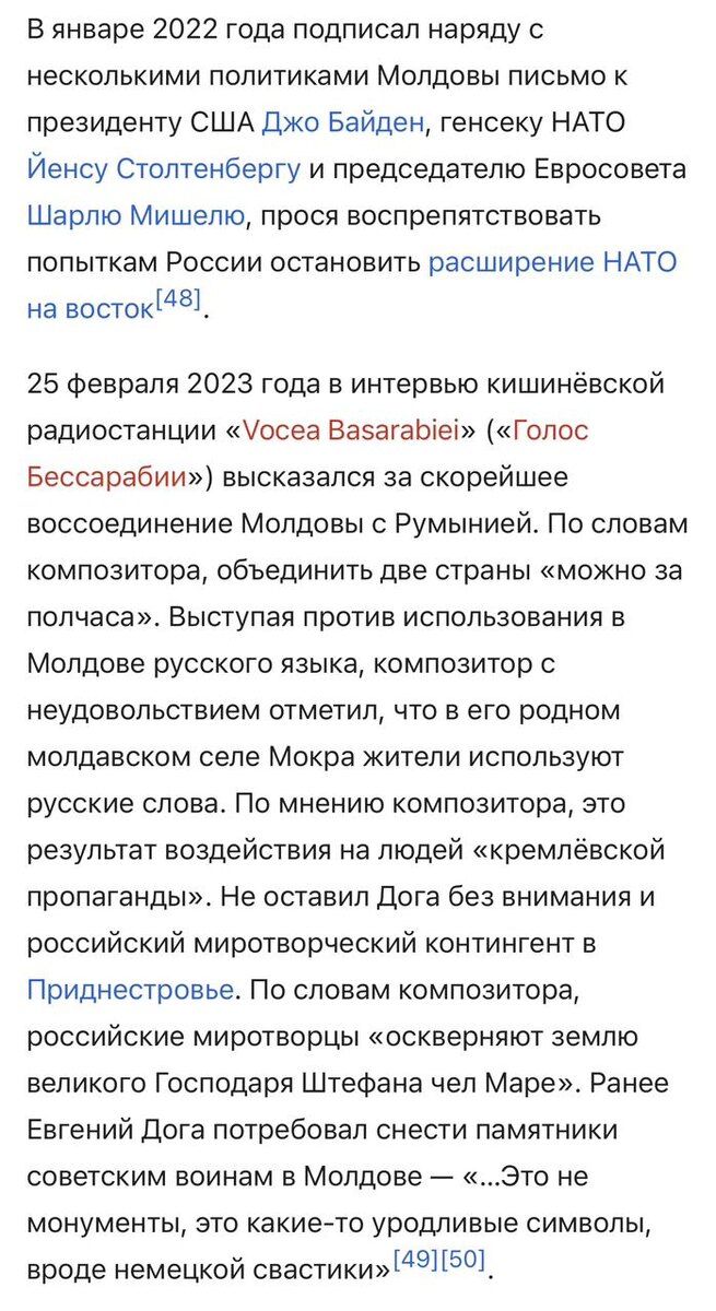 Весной на сотом году жизни умер великий русский художник – Алексей Петрович Ткачёв, из тандема «братья Ткачевы». Старший брат, участник войны, умер раньше. В любом случае, братья, работавшие вместе, часто писали войну и военные годы – и я был огорошен тем, что о смерти классика написали считаные СМИ. Вчера умер композитор Евгений Дога. Новость об этом попала в топ Яндекса и висела там целый день. Сотни русских медиа написали прочувствованные новости и некрологи! Сотни! По поводу смерти Доги огорчились многие настоящие русские патриоты. Я ведь вовсе не против. Наверное, хорошо, что русские такие. И тем не менее, Дога ещё и вот это: То есть старый дурак был обычной русофобской нацистской сукой. Помянули его добрым словом и, говорю, молодцы. Хотя 99 процентов не вспомнит ничего из его музыки, кроме того самого вальса из советского кино по Чехову. В том числе и потому, что Дога, сколько бы его ни славословили, никогда не окажется в одном ряду со Свиридовым и Анатолием Новиковым. Одн
