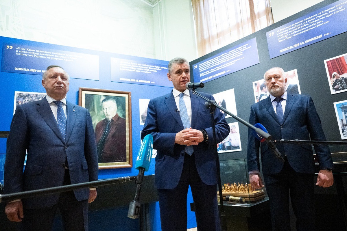 В Музее политической истории России в Санкт-Петербурге Председатель ЛДПР Леонид Слуцкий и губернатор города Александр Беглов открыли выставку «Так говорил Жириновский», посвящённую Основателю партии.