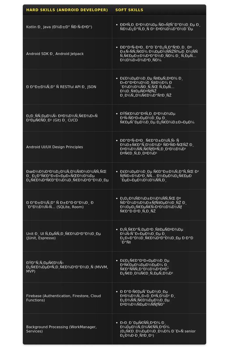 - На какие качества и навыки делать акцент: Знание языков программирования (Kotlin, Java), фреймворков (Android SDK, Jetpack Compose), принципов SOLID, умение работать с системами контроля версий (Git), а также обучаемость и стремление к развитию.