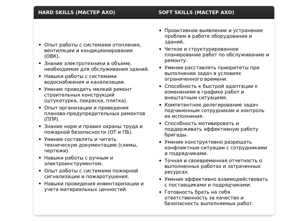 Ключевые навыки и компетенции, релевантные для должности мастера АХО.