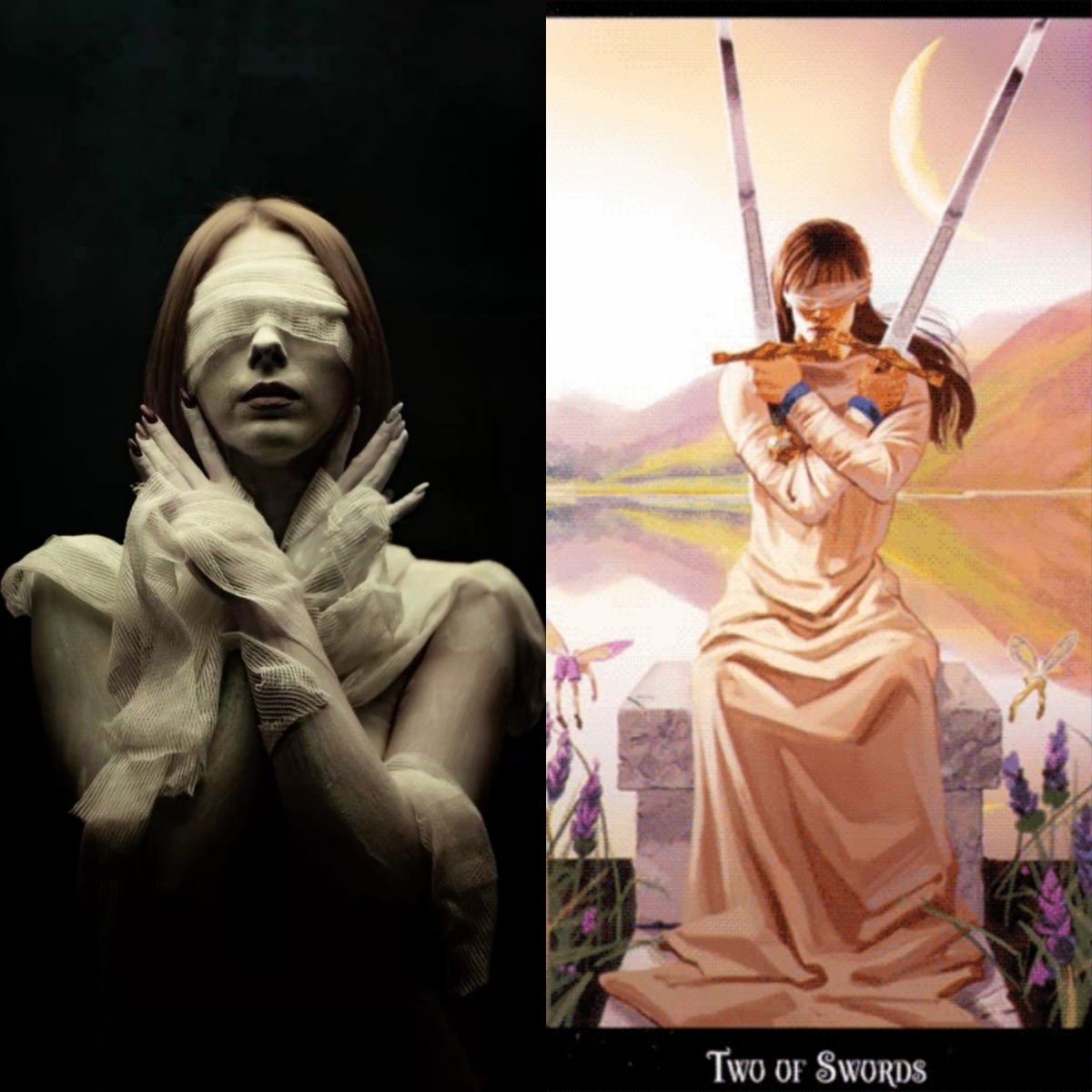 Поэтому ДВОЙКА МЕЧЕЙ описывает состояние при котором не хочется видеть ту самую правду которая очевидна, поэтому лучше завязать глаза.