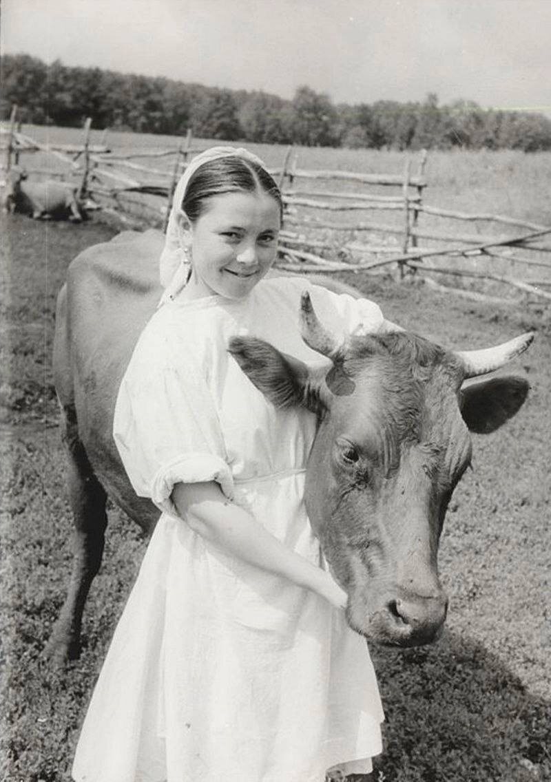"Доярка и корова-рекордистка Майя: трудовые будни колхоза имени Маленкова, 1956 год"