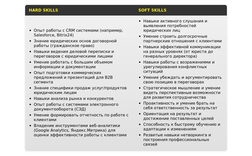 - актуальные навыки для менеджера по работе с юридическими лицами.
