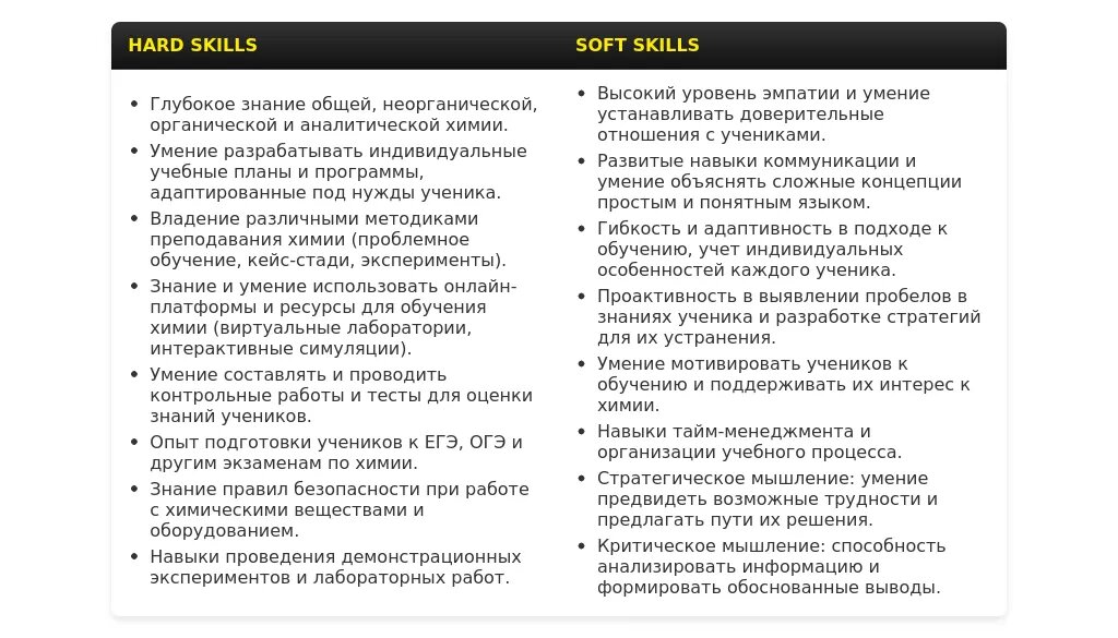 Адаптация раздела "Навыки" в резюме репетитора по химии