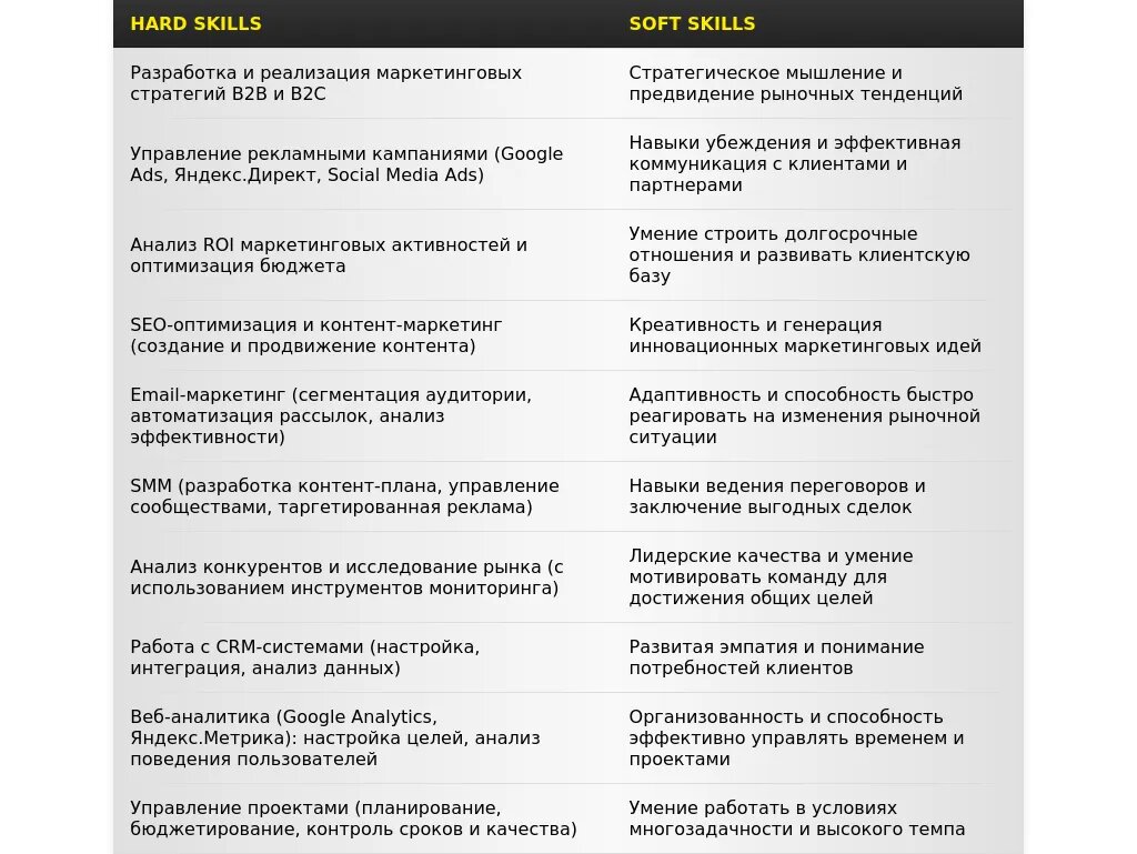 - Специфические требования к знанию программного обеспечения или инструментов маркетинга.