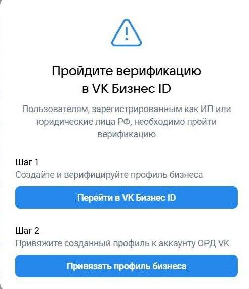 🤨 Обновления в 🌐 ОРД: С 3 июня ИП и Юр.Лицам нужно подтвердить свой профиль через VK Бизнес ID. При входе в ОРД пользователей встречает сообщение, которое требует верифицироваться через ВК Бизнес. Переходим в VK Бизнес ID: 1. Заполняем данные о ИП или Юр.Лице. 2. Вводим паспортные данные. 2. Подтверждаем профиль через Гос.Услуги или банковские приложения для бизнеса. 3. Возвращаемся в ВК ОРД и нажимаем "Привязать профиль бизнеса" Готово. Займет ~7 минут. ps. Меры необходимы для защиты от мошенников, которые при желании могли занести акты на многомиллионные суммы и инициировать ложные начисления сборов.