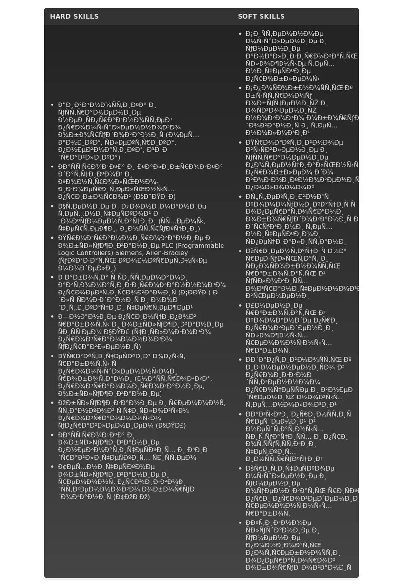 - (если вакансия подразумевает работу с промышленным оборудованием).Несоответствие требованиям вакансии:❌ "Ищу работу в сфере IT".