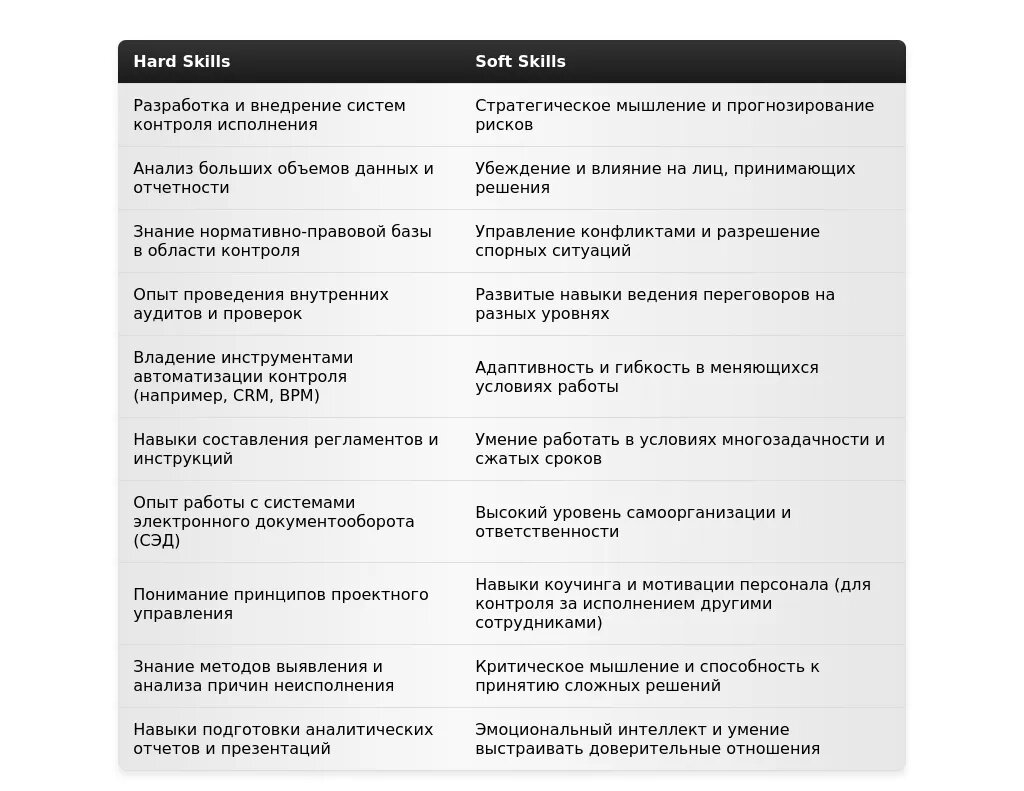 - Для вакансий в государственных органах: "Соблюдение нормативно-правовых актов", "контроль за исполнением регламентов", "работа с документацией", "обеспечение законности".