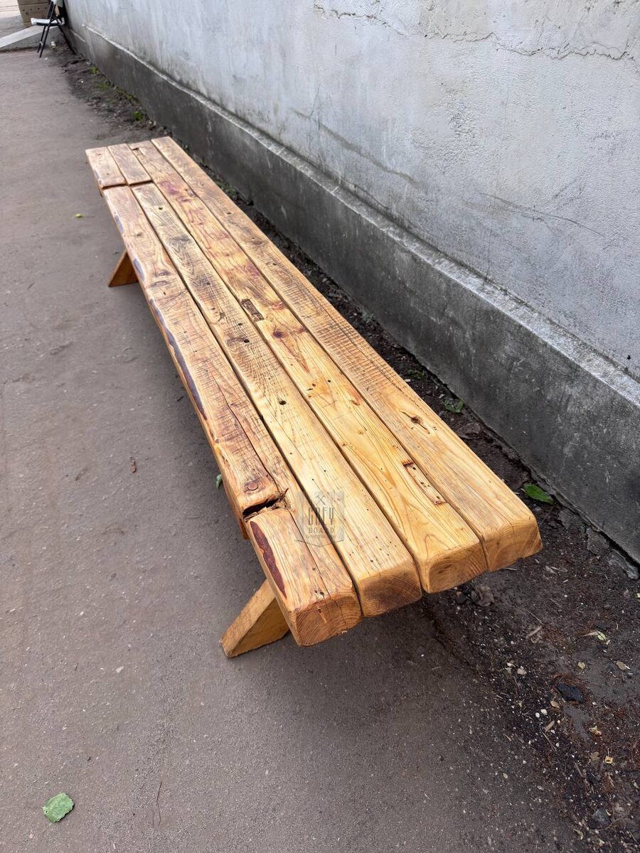 Эта лавочка сделана из настоящей амбарной доски. Каждая доска – с историей, каждая трещинка – след времени. Мы не маскируем возраст — мы его подчеркиваем.