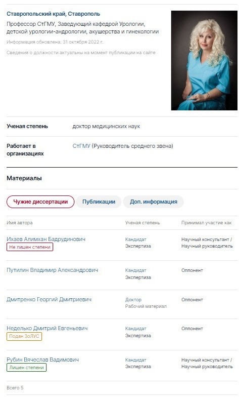 Деревянко Татьяна Игоревна Профессор #СтГМУ, Заведующий кафедрой Урологии, детской урологии-андрологии, акушерства и гинекологии https://www.dissernet.org/person/DerevankoTI