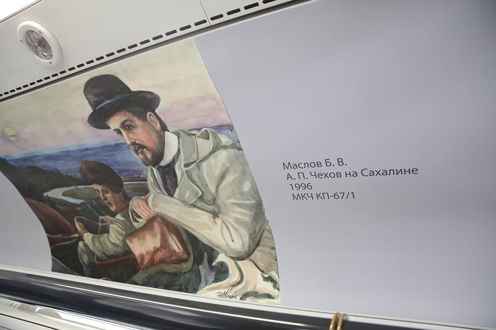 На Сахалине в честь юбилея Чехова запустили «Чеховский поезд» между городами Долинск и Корсаков, его оформили работами местных художников