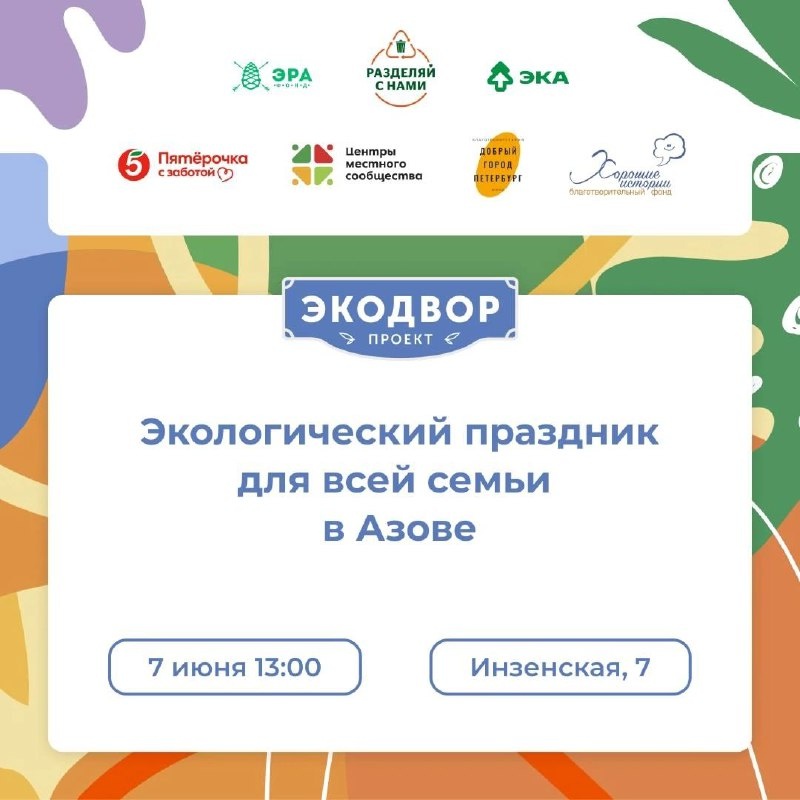 Экологическая городская организация ЭКА приглашает всех азовчан — с детьми, друзьями и даже с соседями на праздник «Экодвор», который состоится 7 июня, 13:00 — 16:00 по адресу г. Азов, ул. Инзенская, 7