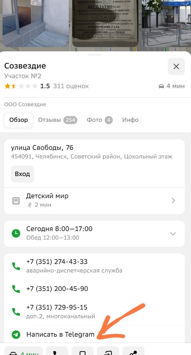 У управляйки Созвездие появился свой телеграм чат, чтобы оставлять заявки аварийной службе. Этот чат можно найти в 2GIS https://t.me/+79123104860 Но чатом могут пользоваться только владельцы аккаунтов премиум в телеграм 🤷 Проверьте, есть ли у ваших управляек премиум чаты для оставления заявок ;)