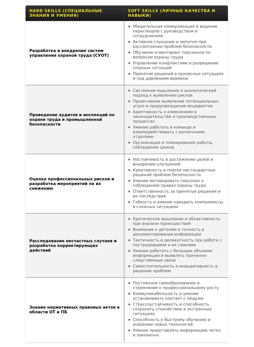 Адаптация раздела "Навыки" специалиста по ОТ и ТБ