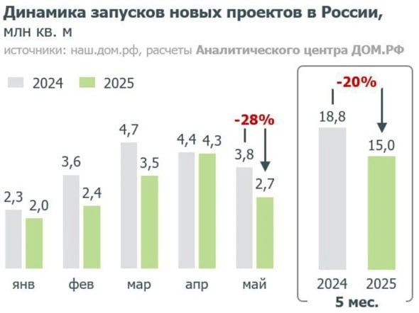 πͺ Π Π ΠΎΡΡΠΈΠΈ β ΠΌΠΈΠ½ΠΈΠΌΠ°Π»ΡΠ½ΡΠΉ Π·Π°ΠΏΡΡΠΊ Π½ΠΎΠ²ΠΎΡΡΡΠΎΠ΅ΠΊ Ρ Π²ΡΠ΅ΠΌΡΠ½ ΠΏΠ°Π½Π΄Π΅ΠΌΠΈΠΈ β ΠΠΎΠΌ.Π Π€ Π ΠΌΠ°Π΅ Π½Π° ΡΡΠ½ΠΎΠΊ Π²ΡΡΠ»ΠΎ Π²ΡΠ΅Π³ΠΎ 2,7 ΠΌΠ»Π½ ΠΌΒ² ΠΆΠΈΠ»ΡΡ. ΠΡΠΎ Π½Π° 37% ΠΌΠ΅Π½ΡΡΠ΅, ΡΠ΅ΠΌ Π² Π°ΠΏΡΠ΅Π»Π΅, ΠΈ Π½Π° 28% ΠΌΠ΅Π½ΡΡΠ΅, ΡΠ΅ΠΌ Π³ΠΎΠ΄ Π½Π°Π·Π°Π΄. βοΈ ΠΠΈΡ