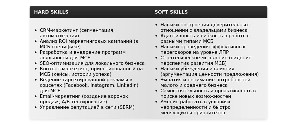 Адаптация раздела "Навыки" для менеджера по привлечению клиентов МСБ