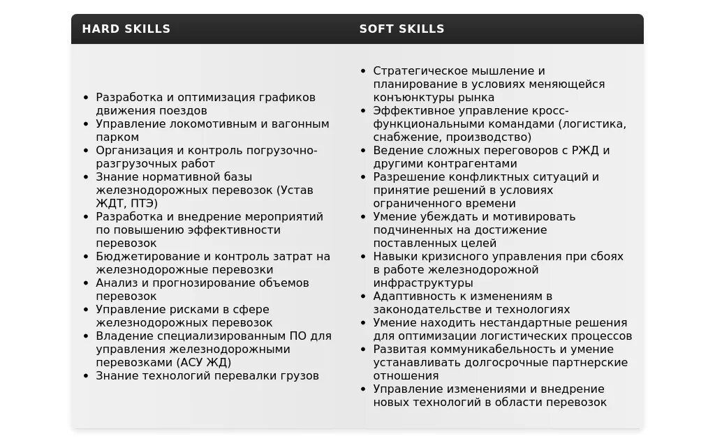 - Знание нормативных документов и правил железнодорожных перевозок.