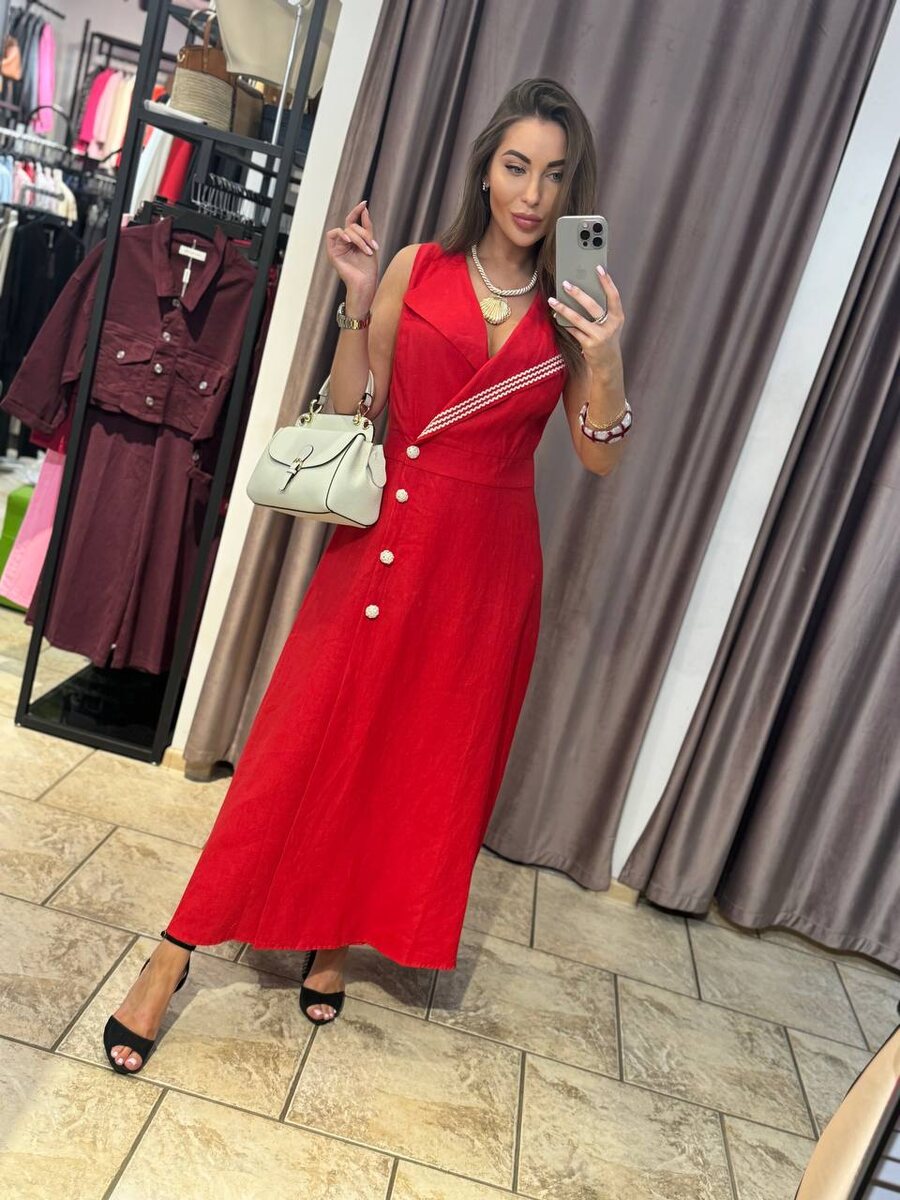 Платье в алом оттенке из льна