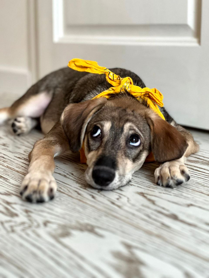 Куса нашла первый дом еще до прививки, но через два месяца позвонили и сказали "забирайте, она вырастет огромная!! мы не можем держать такую собаку".