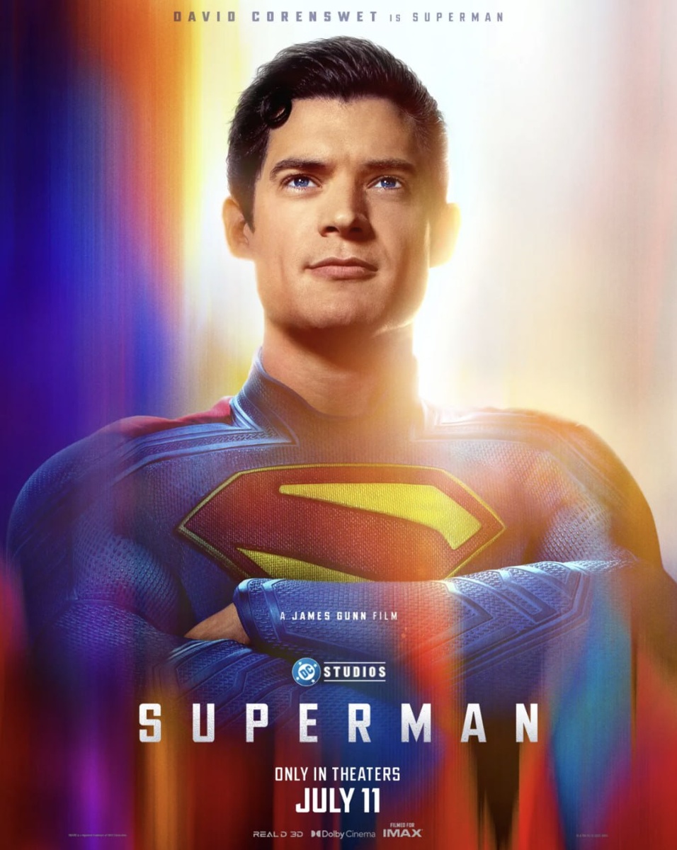 Дэвид Коренсвет (и не только) — на новых постерах «Супермена». Премьера запланирована на 11 июля. В картине сыграли также Изабела Мерсед, Эди Гатеги, Натан Филлион, Рэйчел Броснахэн, Энтони Кэрриган, Николас Холт, Скайлер Джизондо. Ходят слухи, что в фильме появится и Супергерл в исполнении Милли Олкок, которая уже утверждена на главную роль в следующей картине DC Studios «Супергерл: Женщина завтрашнего дня».