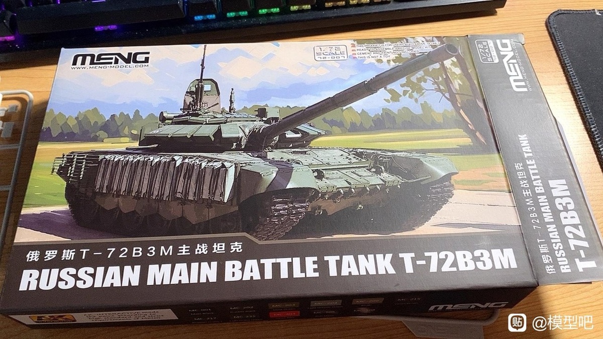 Китайская Meng Model показала состав набора своей новой модели Т-73Б3М обр. 2016 г. в масштабе 1/72: Russian main battle tank T-72B3M (каталожный номер 72-007)