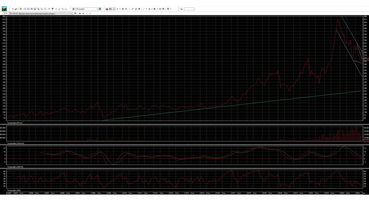 Делая общий обзор новостей, технический анализ и варианты прогноза, можно сказать, что акция сейчас в основном удерживается около уровня 550. Если компания Газпромнефть выплатит дивиденды и будет готова выплачивать их в октябре 2025 года, то серьезной просадки в акции не будет просматриваться. Если будет ухудшение новостей, компания сообщит, что дивиденды в октябре будут урезаны на 50% или их не будет вообще, тогда можем увидеть понижение уровня. Поэтому до середины июня буду придерживаться варианта: 1, при прояснении обстановки могу перейти на вариант: 2 или 3.