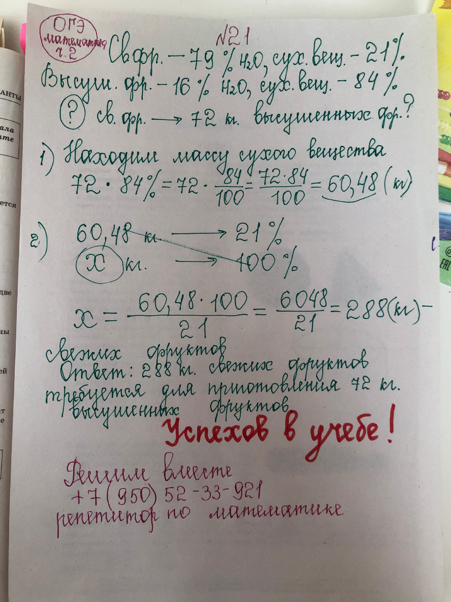 ОГЭ по математике: сколько требуется свежих фруктов для приготовления 72 кг высушенных фруктов (ч.2 номер 21)