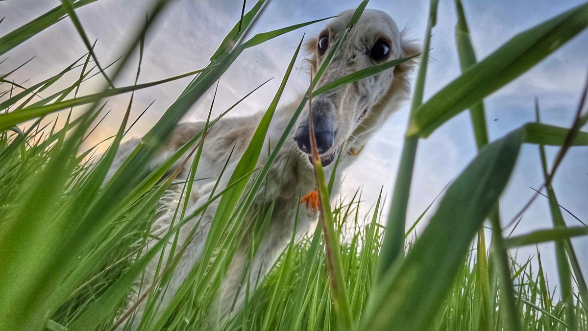 Оказывается, комары любят борзянок больше, чем хасей. Опытным путем выяснилось, что длинный нос куда интереснее. Приходится защищать его всякими там спреями, иначе гулять собачечка будет исключительно рядом и нос подставлять для того, чтобы человек постоянно сгонял поднятых из травы насекомых.