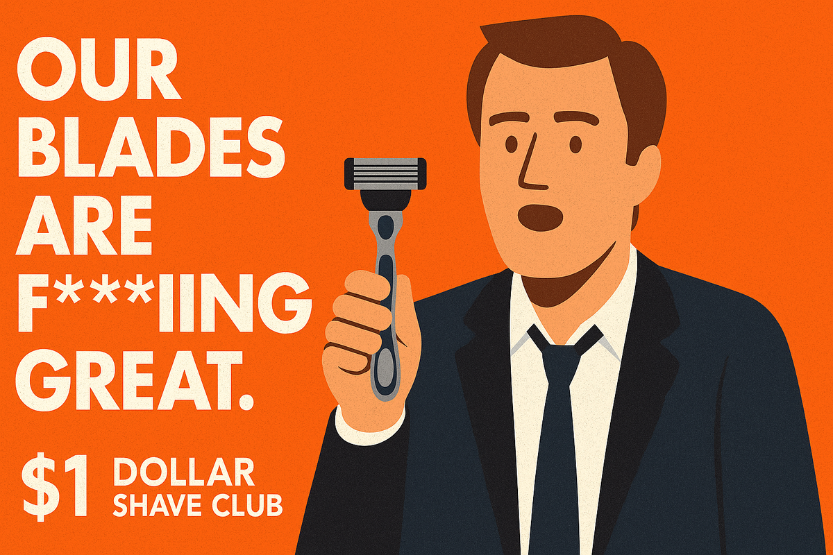 В 2012 году американский стартап по продаже бритв Dollar Shave Club снял юмористический промо-ролик «Наши лезвия – чертовски крутые» (по английски звучит иначе) , потратив всего $4 500 и один день съёмок. Видео сразу взорвало интернет: за двое суток ролик собрал миллионы просмотров, а сайт обвалился от потока заказов – 12 000 новых подписчиков приобрели бритвы по $1 в месяц. Стоимость лида – копеечная. Спустя пять лет компанию купил Unilever за $1 млрд. Этот случай – классика: с помощью самоиронии и сарказма маленький бренд обошёл гигантов индустрии без миллионы на рекламу.