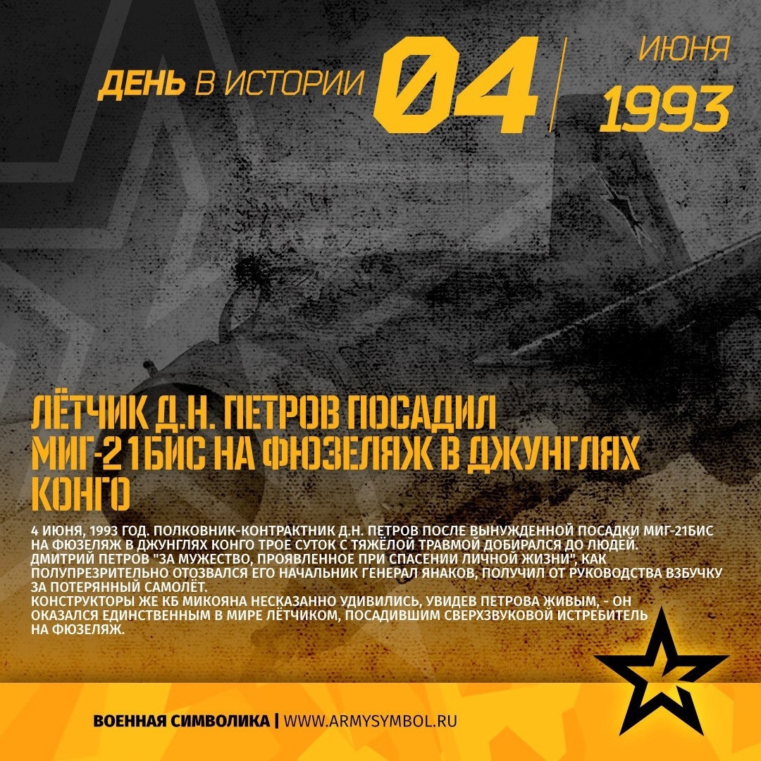 Лётчик Д.Н. Петров посадил МиГ-21БИС на фюзеляж в джунглях Конго в 1993 4 июня, 1993 год. Полковник-контрактник Д.Н. Петров после вынужденной посадки МиГ-21бис на фюзеляж в джунглях Конго трое суток с тяжёлой травмой добирался до людей. Дмитрий Петров "за мужество, проявленное при спасении личной жизни", как полупрезрительно отозвался его начальник генерал Янаков, получил от руководства взбучку за потерянный самолёт. Конструкторы же КБ Микояна несказанно удивились, увидев Петрова живым, - он оказался единственным в мире лётчиком, посадившим сверхзвуковой истребитель на фюзеляж. #ПамятныеДатыВоеннойИсторииОтечества #ДеньВИстории #ГодЗащитникаОтечества #80ЛетВеликойПобеды Источник: https://vk.com/wall-60767131_30814 Подпишитесь на наши группы ВКонтакте и в Одноклассниках - читайте, смотрите и комментируйте! Источник