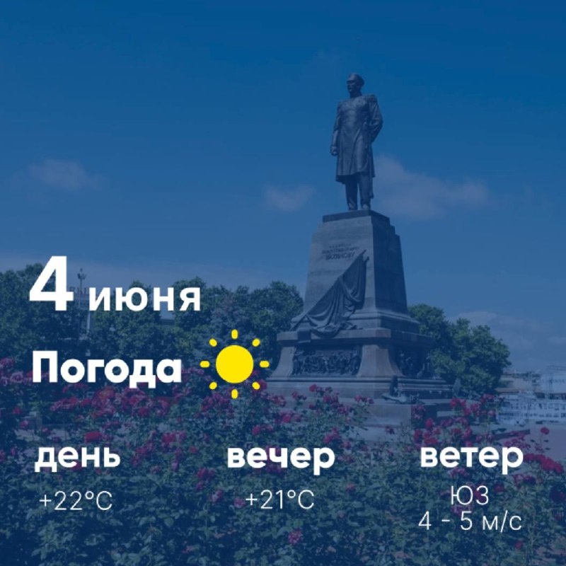 ☀️ Доброе утро, севастопольцы! Сегодня, 4 июня, в городе ясно. Всем хорошего настроения и продуктивной среды!