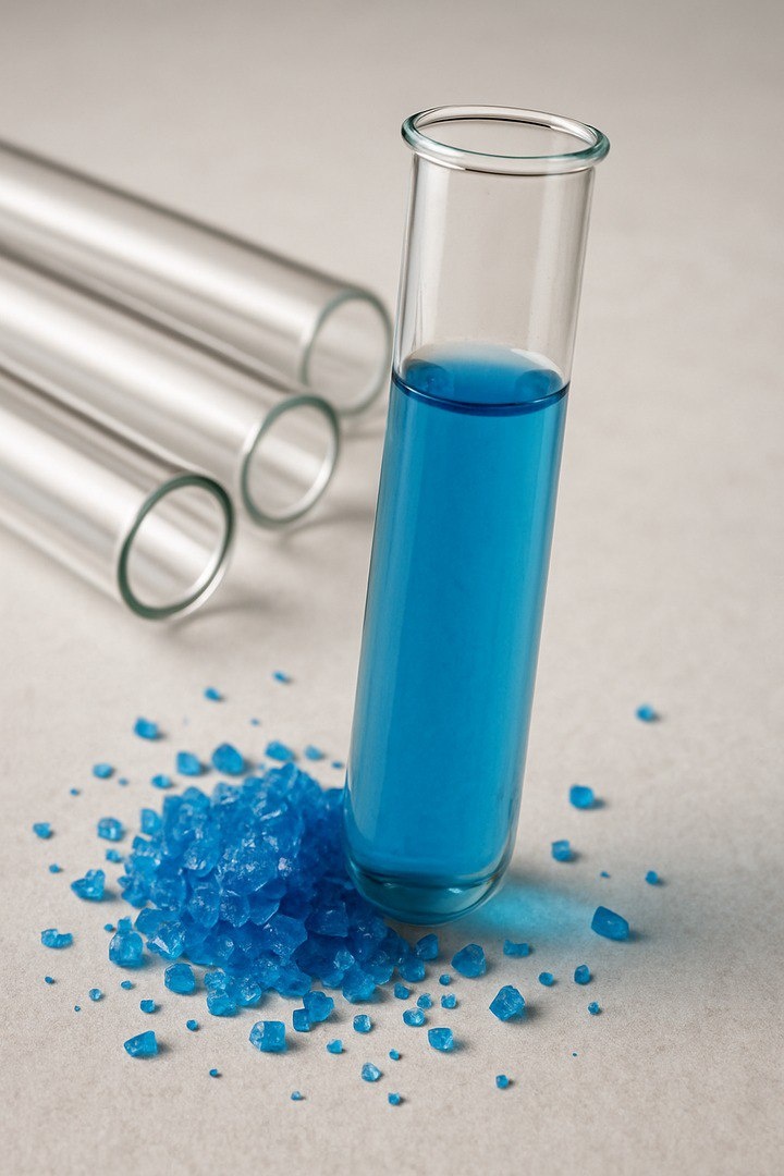 🔹 В дистиллированную воду постепенно добавляют медный купорос (CuSO₄·5H₂O) при постоянном перемешивании.
