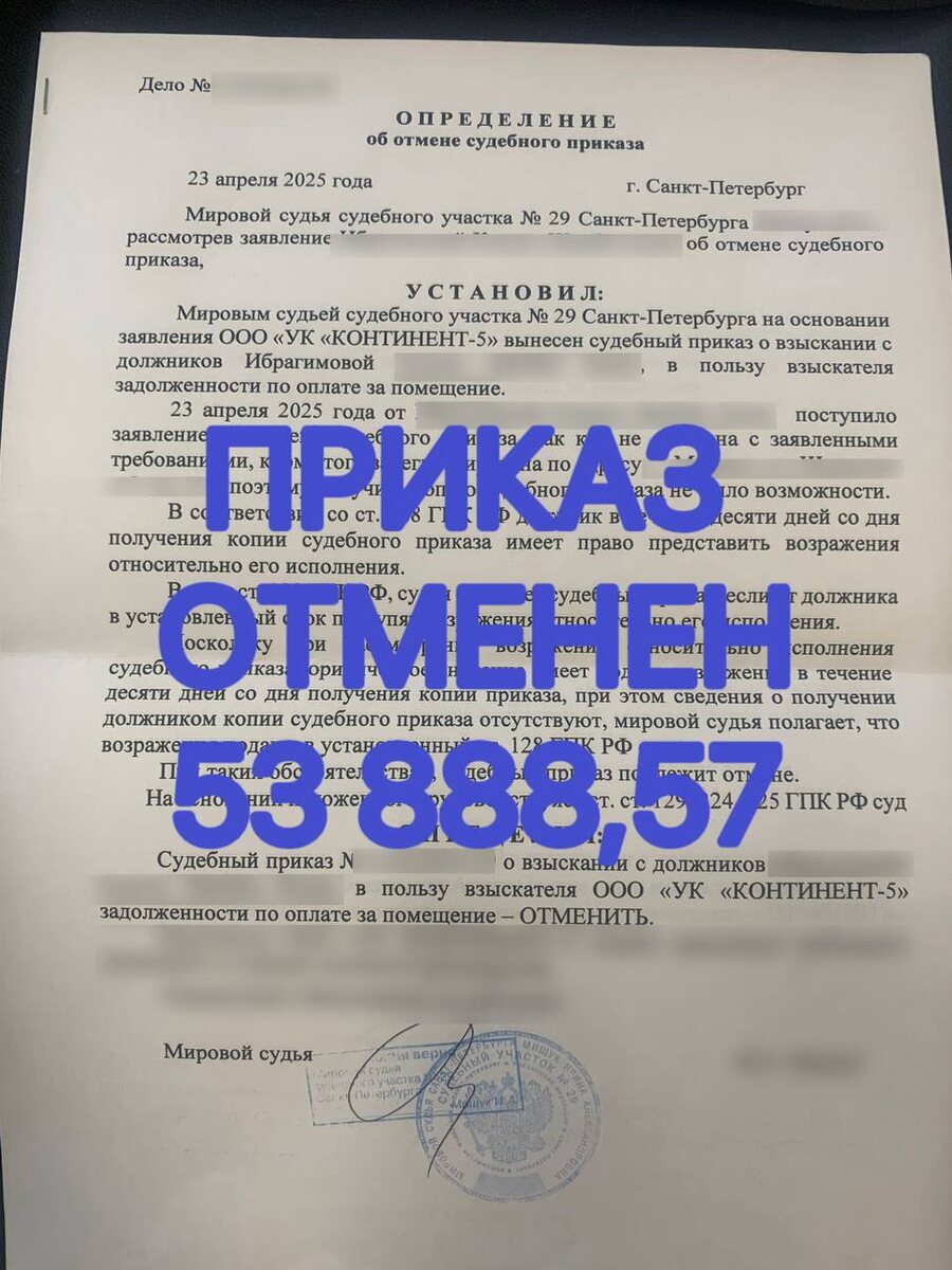 🌟 Коммунальный долг — отменён! 🧾🚫 У Марины Игоревны накопился долг по коммуналке, и управляющая компания быстро подала в суд. 🛎️Без предупреждения — вынесли судебный приказ. 😤Марина обратилась к нам с просьбой помочь. Мы сразу включились: подготовили документы, составили ходатайства, всё отправили в суд.👩⚖️ И вот сегодня — отличные новости! 💌 Судебный приказ отменён! 🎉 Больше никаких списаний с карты и страха перед приставами.☀️ Поздравляем Марину и благодарим нашу команду за оперативность и чёткую работу! 💪 Тоже надоели долги по коммуналке, которые капают каждый месяц❓ Не откладывайте — обращайтесь! 📩 Мы поможем отменить судебные приказы и начать путь к финансовой свободе
