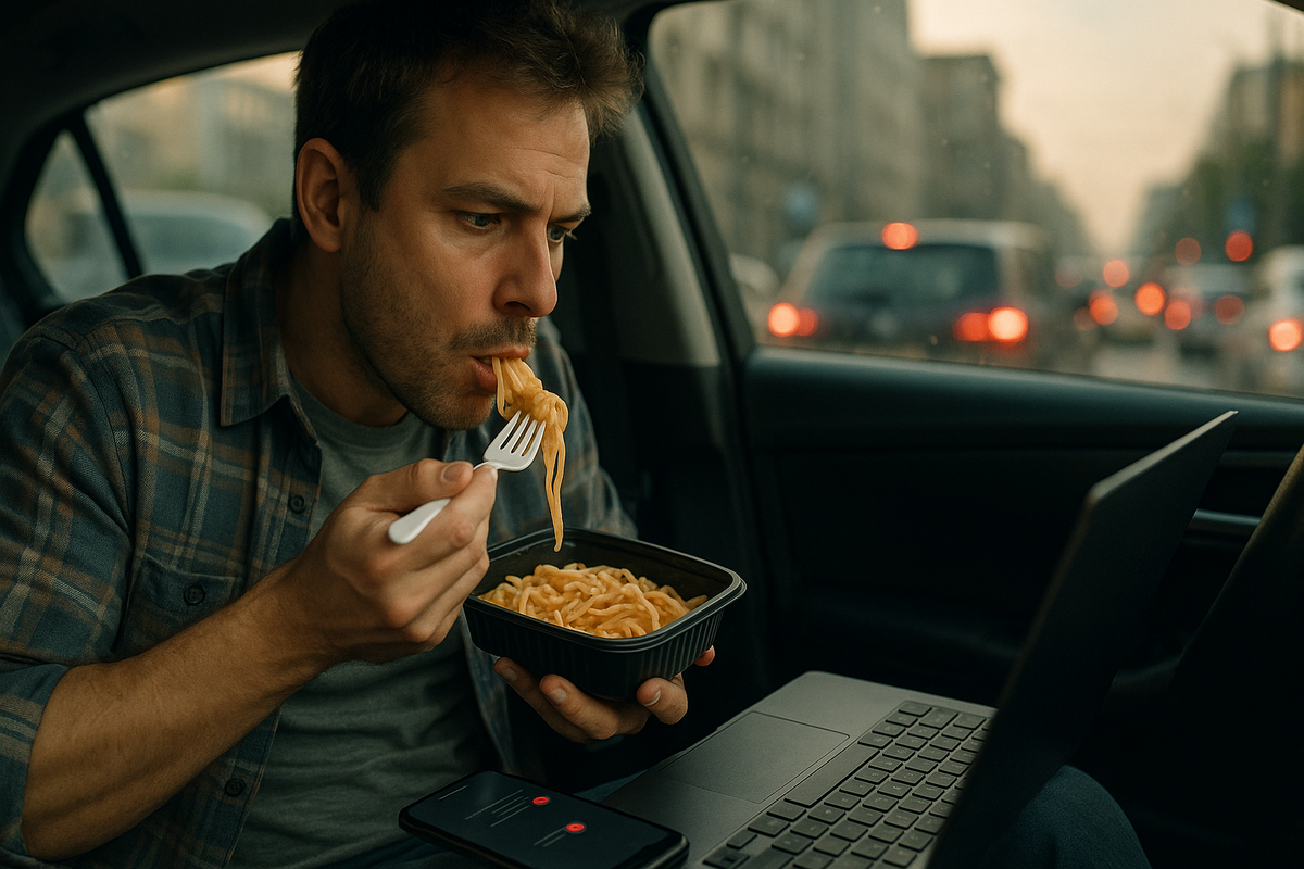 Когда-то я ел так, будто за мной гнались. Быстро, на ходу, в машине, перед ноутбуком, в телефоне. Я мог проглотить тарелку макарон за 4 минуты и не понять, был ли там вообще вкус. Главное - чтобы было сытно и по расписанию. И вот однажды мне стало плохо. Не физически - а как-то внутри. Будто я сам от себя отстаю. Усталость, раздражение, ощущение, что я всё время спешу. Даже когда сижу дома один на кухне. Тогда я начал замечать - я ем так же, как и живу. Механически. На автомате. Когда мне было лет двадцать пять, я мог закинуть в себя огромную тарелку пельменей за восемь минут. Я засекал. Это было вроде челленджа: "успею - не успею до начала фильма". Я почти не чувствовал вкуса. Ел, чтобы закончить. Мне казалось, так делают все. Поесть - это как заправить машину. Быстро, по пути. И дальше - к делам. И тогда я решил: а что если просто попробовать есть медленно? Не навсегда. Один раз. Просто почувствовать. Я выбрал самый обычный ужин - картошку с рыбой. Усадил себя за стол, убрал телефон,