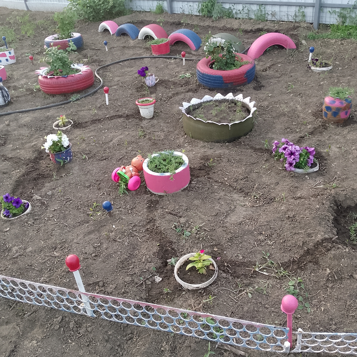 Умеют же люди красоту наводить на участке. Почему у меня нет такой тяги к творчеству не знаю. Перец и помидоры у человека как и должно быть, а у меня печально в этом плане. Помидор один. Перец только горький взошёл из своих семян и тот дохлый пока. Из покупных ничего не получилось вообще. Сегодня жара спадёт буду пересаживать на постоянное место своё богатство. Моя клумба. Прополоть и то никак не собралась. Цветы самосевом в этом году прилетели. Такие вот и их много по участку. Были только ромашки какие-то. Они и сейчас есть. Очень много. Сергей дров привозит и привозит. Целая куча уже. Нужно перекидывать во двор сразу напоить что-то наколоть убрать под крышу и хватит надолго. А красота такая в огороде у людей где Сергей работает. Разбирали сарай оттуда и дрова. Делал и машину. Там дно надо приварить может и ещё чего надо это я не разбираюсь. Познакомилась там с хозяйкой дома. Очень хорошая женщина. Иногда прихожу в гости и мы мило общаемся на разные темы. На солнце очень жарко у н