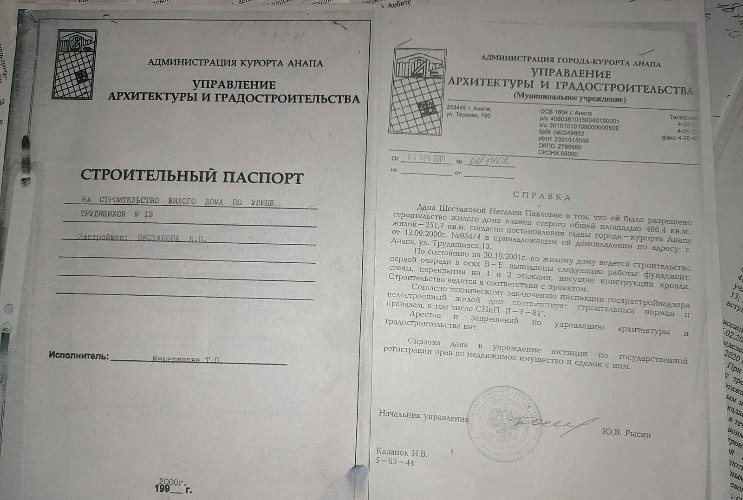 Тогда мы получили Постановление от 27.02.2006 года за подписью замглавы мэра Анапы Харитонова. В тексте был указан дом не ИЖС, а как двухквартирный. Как так вышло – не знаю. Мы даже внимание не обратили на этот факт. Главное строить дальше разрешили. И только шесть лет назад, новая команда мэра обнаружила эту опечатку и началось наше хождение по мукам.