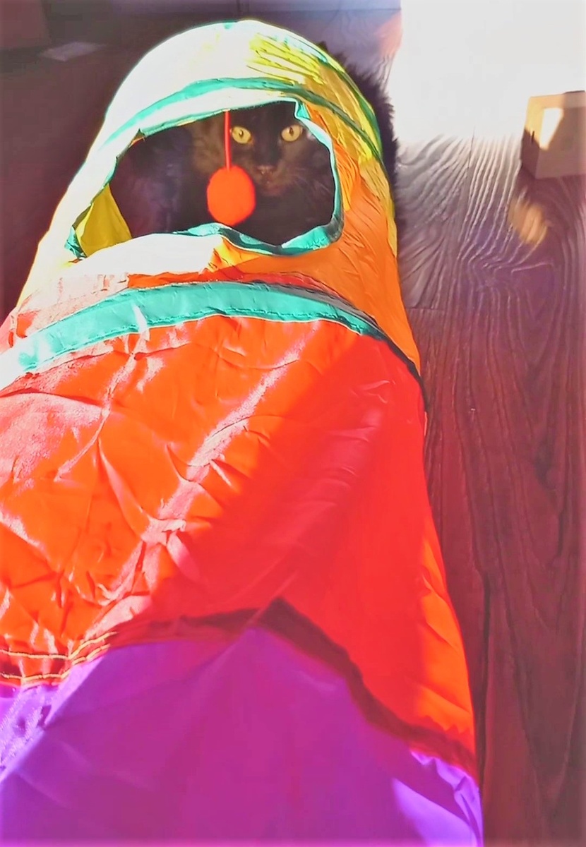 Внимание всем котам! И кошкам тоже! Котятам принять к сведению! Финдир Иннокентий напоминает, что нынче очень важный День порадования кошачьих богов. По такому случаю следует напомнить маломощным двуногим, что мы – прямые представители котьих богов на Земле. Глядя, как радуют человеки нас, кошачьи и человеческие боги радуются. Потому что мы все для радости. Продумайте варианты порадования. Чтобы всем было приятно, полезно, весело. Серьёзный финдир Иннокентий использует тоннель для демонстрации собственной целкости и навыка стрельбы глазами. Но и о своей человеке Натали он, безусловно, правильно позаботился.👇 Чтобы шарик из тоннеля поработал маятником, надо Наталье глубокий поклон отбить Кеше и собственно тоннель тот раскачать. Поклоны - отличный вариант дополнительного развития гибкости. Гибкость телесная способствует гибкости мозговых извилин, а это очень полезный навык - извилинами шевелить, иначе жизнь в унылое болото превратится. Расходимся выполнять предписание! Радеем и радуем.