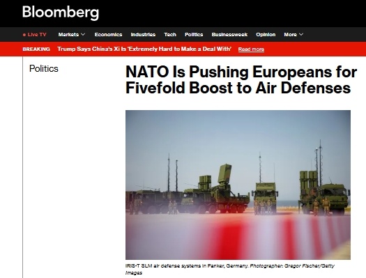 Агентство Bloomberg сообщает о намерении НАТО в пять раз увеличить европейские силы ПВО. По данным агентства, этот вопрос обсуждался на вчерашней встрече министров обороны стран Альянса в Брюсселе, где речь шла о подготовке к саммиту НАТО, запланированному на 24–25 июня в Гааге. Предложение восполнить ключевой пробел путем пятикратного увеличения наземных средств противовоздушной обороны на территории Европы рассматривается как часть ответа на «угрозу со стороны России», отмечают источники агентства. Также отмечается, что речь идёт о коллективной цели для стран — членов альянса, при этом индивидуальные национальные показатели могут различаться. Сроки реализации плана пока не определены. На этой неделе министры стран НАТО также должны утвердить одно из самых амбициозных обязательств по наращиванию запасов оружия со времен Холодной войны в рамках усилий Европы и Канады по перевооружению и сокращению своей зависимости от оборонных систем США. Наращивание вооружений является частью более